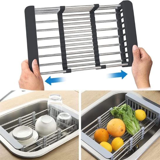 ✅Nuestro Secaplatos con su diseño extensible en acero inoxidable se ajusta de 24cm a 46cm en segundos, optimizando cada centímetro de tu encimera. Más capacidad, menos desorden.